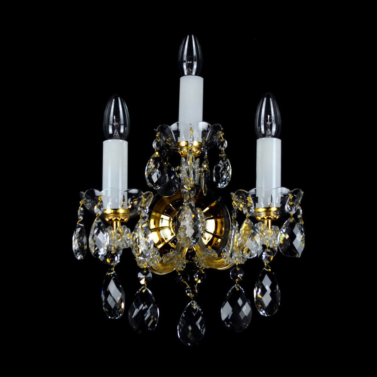 Applique Maria Theresa à 3 flammes avec amandes en cristal taillé (couvercle en verre du bol en laiton)
