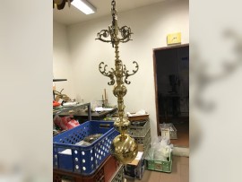 Production sur mesure de lustres néerlandais en laiton moulé à la main pour le château de Moravsky Krumlov. Les lustres sont réalisés d'après les photos originales de l'équipement du château. Les lustres sont une copie réussie des appareils d'éclairage du début du XIXe et du XXe siècle. Les lustres présentent des éléments décoratifs intéressants tels que des poissons en laiton.