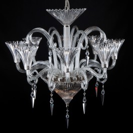 Ces lustres en cristal sont entièrement réalisés à partir de pièces en verre de cristal taillées à la main et affinées par la peinture, la dorure, la gravure et la découpe. Pour obtenir une haute brillance, les pièces coupées sont nettoyées mécaniquement ou chimiquement.