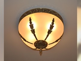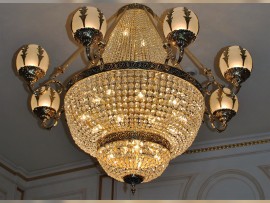 Panier en cristal de strass avec bandeau en laiton massif moulé et ampoules sablées avec feuilles en laiton