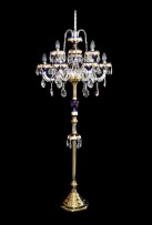 Lampe de sol à 9 bras en cristal rouge bleu foncé avec des fleurs en verre sur fond doré 24k