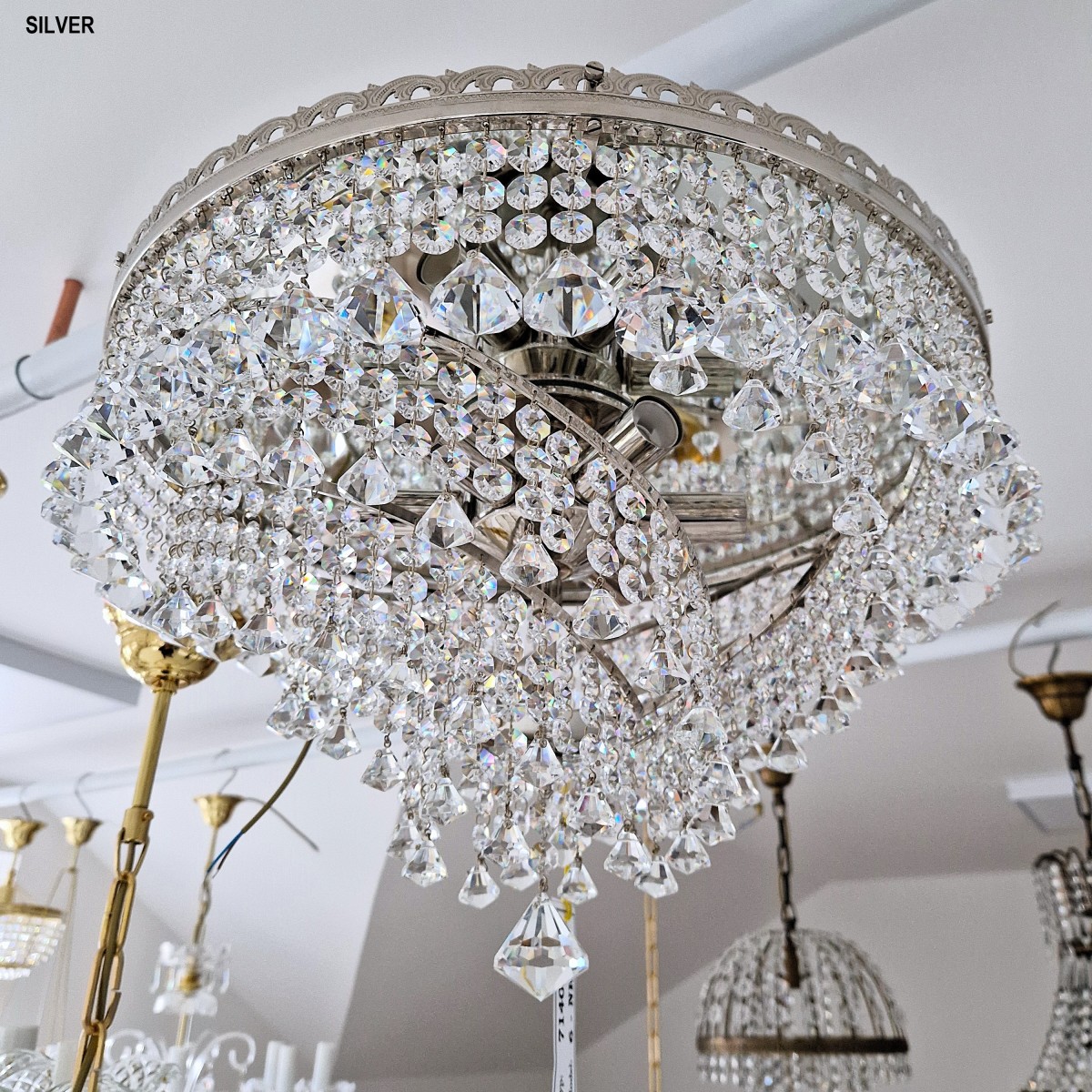 Lustre en cristal de strass monté en surface avec miroir en verre.