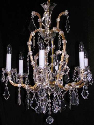 Lustre de Marie-Thérèse en cristal à 6 flammes avec des pendeloques en cristal