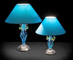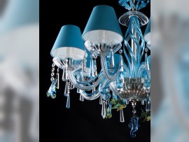 Lustre en cristal décoré de poissons de mer et d'hippocampes - vases / abat-jour bleus