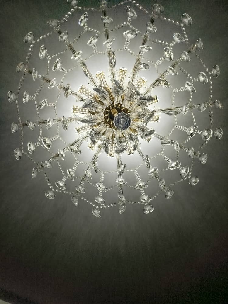 Ce lustre peut être commandé avec des amandes ou des pendentifs plats (voir le dessin).