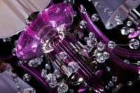 Lustre violet moderne à 6 bras avec perles de cristal et un abat-jour