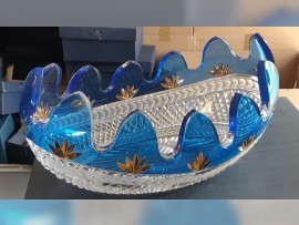 12) Lustre à 12 bras en cristal avec cloches en cristal et vases bleus taillés (une photo)